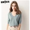 Dlouhý rukáv s výstřihem do V dutý tenký jednobarevný pletený svetr pro ženy na jaro léto volný zeštíhlující svetr pro ženy