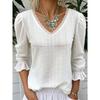 Women's Knitted Embroidered Hollow Lotus Leaf Edge V-neck Short Sleeved Top Women's T-shirt Women's Spring Autumn
