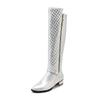 Velké velikosti Kozačky nad koleno Dámské Zlaté Stříbrné Dámské Vysoké Boty Zimní Móda Zip Ležérní Značkové Nízké Podpatky Dlouhé Boty Dámské