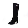 Podzim Zima Kozačky nad koleno Dámské Černé Červené Semišové Dámské Vysoké Boty Luxusní Ležérní Nízký Podpatek Módní Dlouhé Společenské Boty Dámské