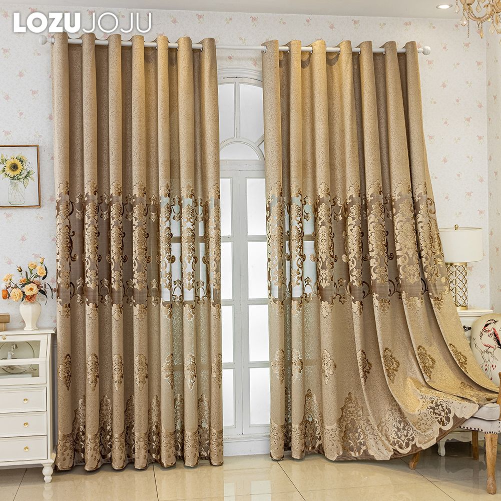 1 ks LOZUJOJU 40-70% zatemňovací evropský styl všestranné luxusní žakárové kroužkové průsvitné závěsy do obývacího pokoje, ložnice, bytové dekorace