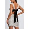 Sexy dámské mini šaty bez rukávů, slim, s odhalenými zády, s mašlí a třpytivými prvkySexy dámské mini šaty bez rukávů, slim, s odhalenými zády, s mašlí a třpytivými prvky