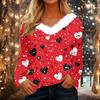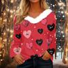 Women's Valentine's Day Heart Printed Long Sleeve Shirt V Neck Casual Loose T-Shirt Tops