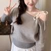 Red One Shoulder Lace Up Knitted Sweaters for Women Japanese Style Design Short Girls Tops Ladies Chic Shoulder Length Long Sleeved Pullovers