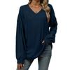 Podzim Zima Jednobarevné V-výstřih Volné Tričko s dlouhým rukávem Top pro Ženy Skladem Trička Dámská