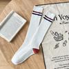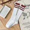 White Double Needle Striped Calf Socks Combed Cotton Japanese Retro Women'S Medium Tube Socks College Cotton Socks