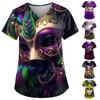 Pánské tričko s krátkým rukávem a výstřihem do V s motivem karnevalu Mardi Gras, vzorem masky, náprsní kapsou, pečovatelské tričko