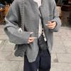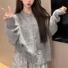 Grey Round Neck Wool Cardigan Jacket for WomenLoose Kitten Knitted Sweater Short Style