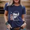 Dámská bavlněná trička s krátkým rukávem a kulatým výstřihem s ležérním módním potiskem lebky a Coly pro Halloween