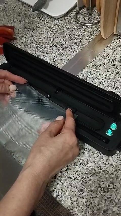 Dobrý automatický vakuovač, vše je velmi jednoduché a rychlé, vložil jsem okraj sáčku s produktem dovnitř, zavřel, stiskl tlačítko a hotovo, vzduch je odsátý a sáček svařený) 👍