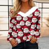 Dámské tričko Tričko Vánoční tričko s dlouhým rukávem Vánoční fleecový límec s výstřihem do V