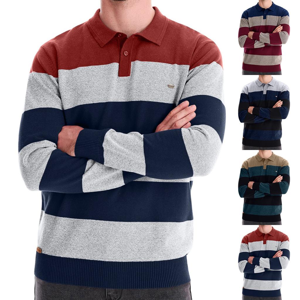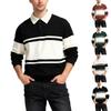 Men's Winter Color Blocked Striped Lapel Button Slim Fit Long Sleeve Top