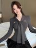 Hollow Out V-neck Knitted Sweater Women's Sweater with Bubble Sleeves Versatile Low Neck Base Shirt Top