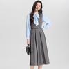 Preppy Vzhled Falešné Dvoudílné Slim Šaty s Designovým Patchworkovým Polo Límcem a Páskem