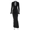 Dámské Sexy Hluboký Výstřih Dlouhý Rukáv Jednobarevné Spice Girl Móda Dvojitě Řasené Dlouhé Šaty