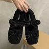 Bow Fur Square Toe Women Loafers Flats Warm Shoes Woman 2024 Trend Designer Plush Snow Boots Winter Casual Wedges Zapatos Mujer
