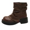 Platformové Kotníkové Dámské Kozačky Střední Podpatek Zimní Kožené Dámské Boty 2025 Trend Zbrusu Nové Robustní Módní Teplé Pohodlné Sněhové Boty pro Ženy