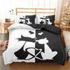 Black And White Cat And Dog Cartoon Print Quilt Cover Simple Style Duvet Cover Pillowcase Set Bedding Three-Piece Set
