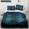 Vintage Sailboat King Queen Duvet Cover Nautical Ocean Bedding Set for Teens Adults Ship Fire Black 23pcs Polyester Quilt Cover