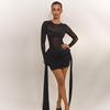 Autumn Women's Temperament Dress Fashion Style Sexy One-line Shoulder Mesh Long-sleeved Dress