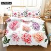 Romantický květinový povlak na přikrývku Růžový květinový ložní set Mikrovláknový povlak na přikrývku King Pro dívku Ženy Svatba Valentýnská dekorace
