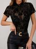 Women's Summer Solid Color Short Sleeve Mesh Patchwork Receiving Waist Lift Hip Jumpsuit