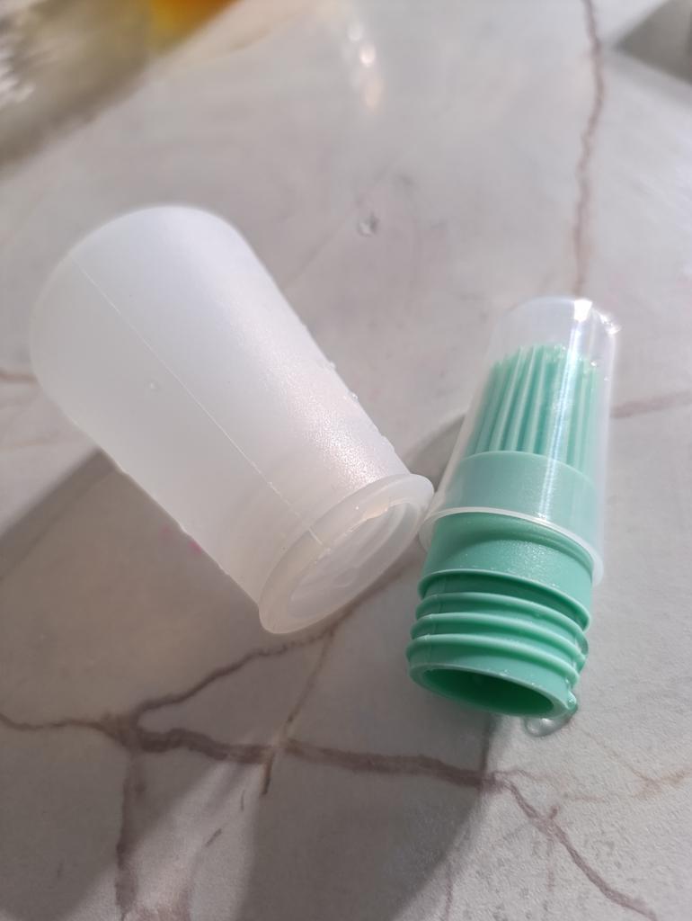 Roztomilý štěteček s nádobkou pro nanášení objemu v ml., nádobka je měkká, silikonová. Štěteček slouží i jako zátka-víčko, dobře přiléhá. Vyzkoušela jsem s vodou, neprotéká! Doufám, že bude vše skvělé při použití s olejem. S nákupem jsem spokojená!