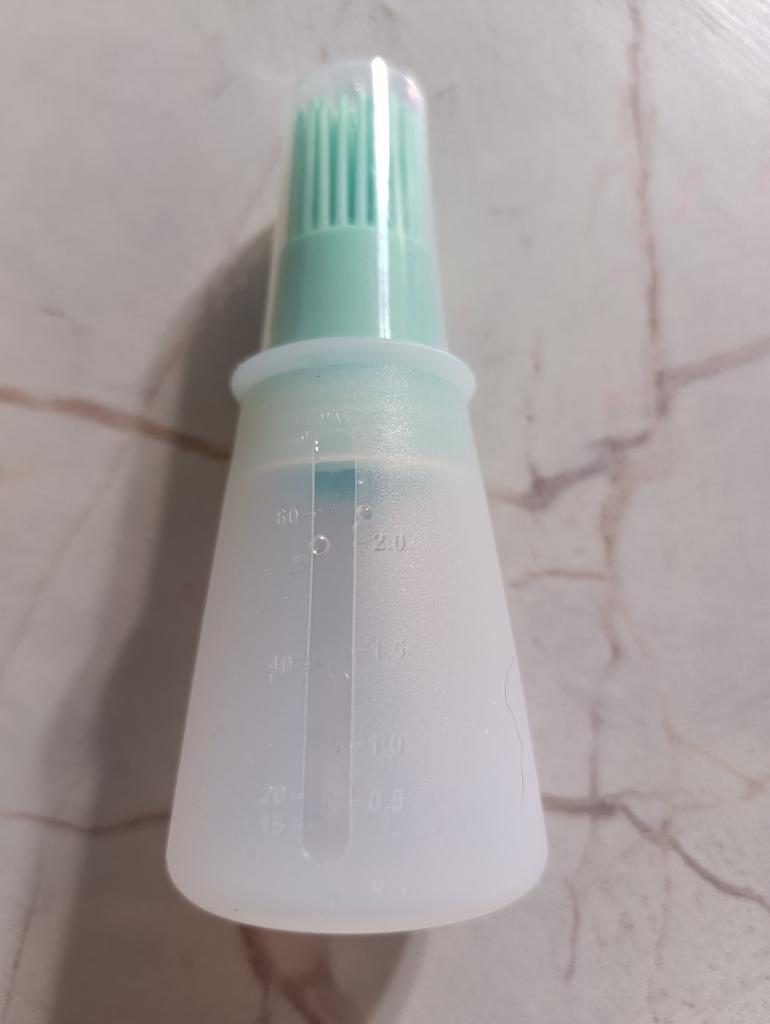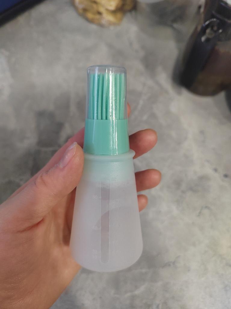 Pohodlná lahvička na olej. Pohodlné mazání pánve.