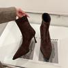 Dámské boty na vysokém podpatku s špičatou špičkou Kotníkové Sexy Boty Módní Zima 2024 Horký Prodej Univerzální Vysoké Podpatky Chelsea Boty Chůze