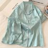 Harajuku Simple Style Women's 3pcs Pajamas Striped Fashion Ins Milk Silk Sleepwear New Autumn Home Nightgown