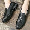 Módní pánské boty z pravé kůže Nové ležérní boty Business pánské nazouvací boty Vzor krokodýlí kůže Mokasíny Ručně vyráběné boty na řízení