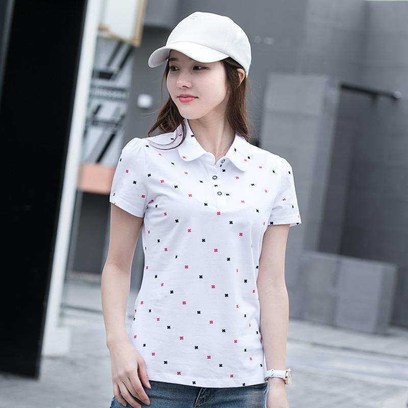 Dámské 4XL tričko s krátkým rukávem Jaro a léto Klopa s potiskem Univerzální polokošile Ležérní klopa Dámská móda Top