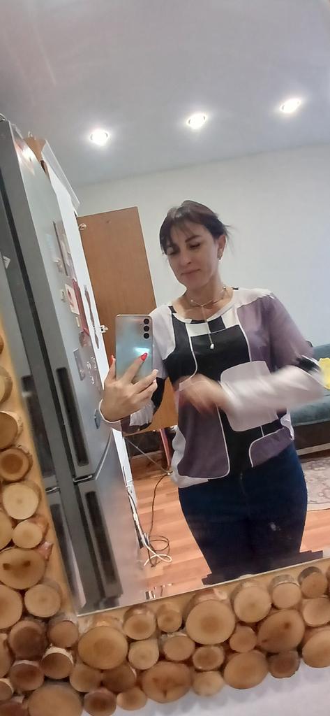 Zvláštní střih, v obvodu dobré, ale ramena a rukávy jsou velké. Je třeba to trochu upravit, jinak je to pěkná halenka.
