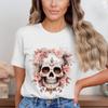 Floral Skull Print Round Neck Plus Size Women's Loose Round Neck Pure Cotton Short Sleeved Top T-Shirts Women’s