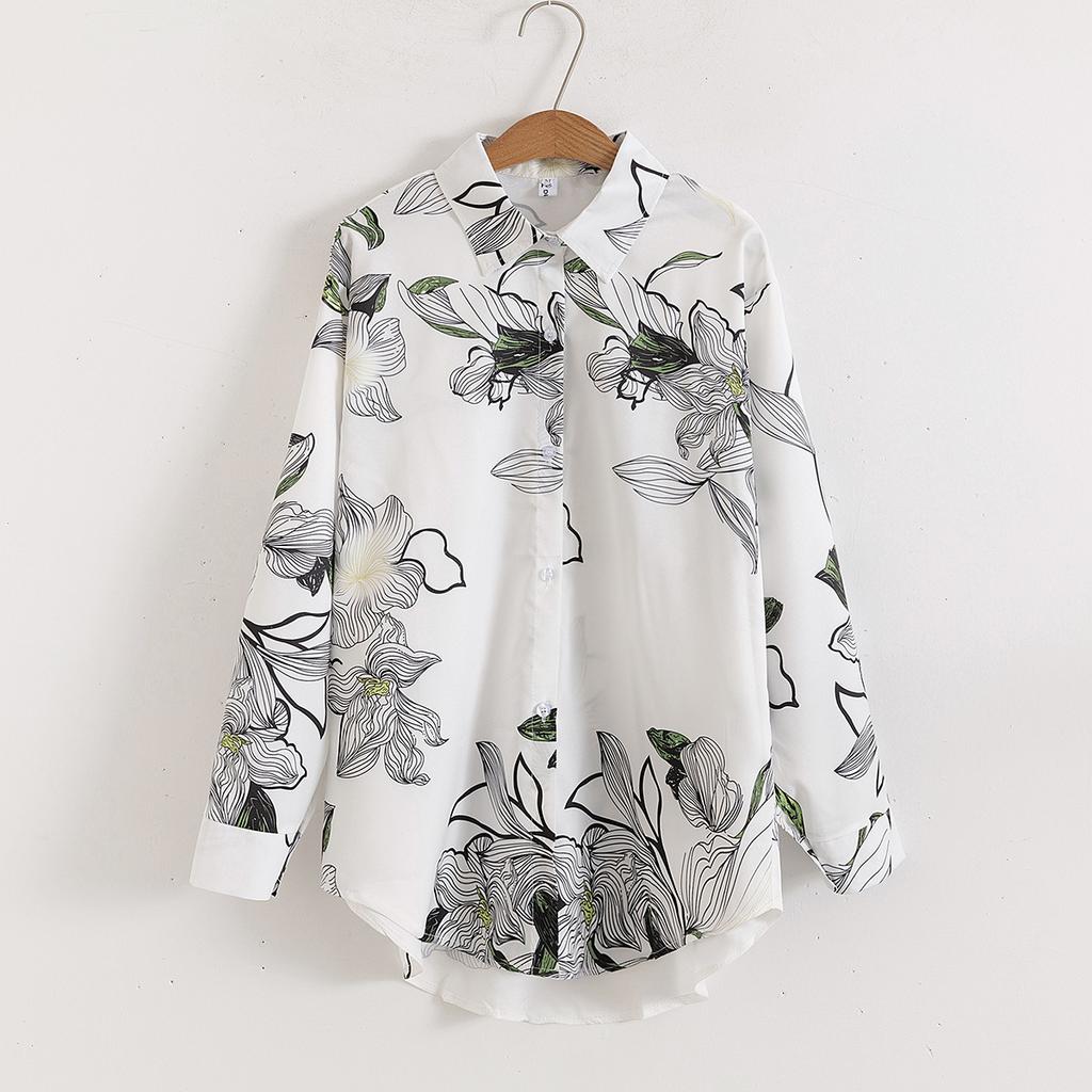 Dámská košile s květinovým potiskem, volným límcem a dlouhým rukávem, módní