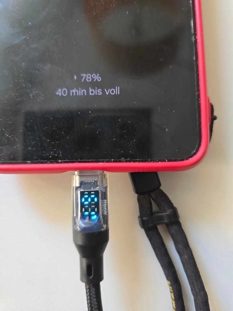 Kabel nabíjí, podporuje rychlé nabíjení, ale indikátor ukazuje stejnou hodnotu, 117-114 wattů, na různých telefonech, s různými úrovněmi vybití, na různých nabíječkách. Indikátor je v podstatě vadný. A tento problém se vyskytuje u 2 kabelů. Kabel ukazuje 114 wattů na nabíječce, která dokáže vyprodukovat maximálně 15 wattů. lol.