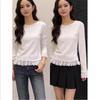 Dámské jarní a letní topy Krajkový límeček Falešný dvoudílný Super sladký Slim fit Bavlna Vysoký pas Falešný dvoudílný Tričko s dlouhým rukávem
