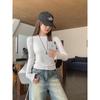 Small round neck slim long-sleeved bottoming shirt for women 2024 autumn new design ribbed T-shirt right shoulder top