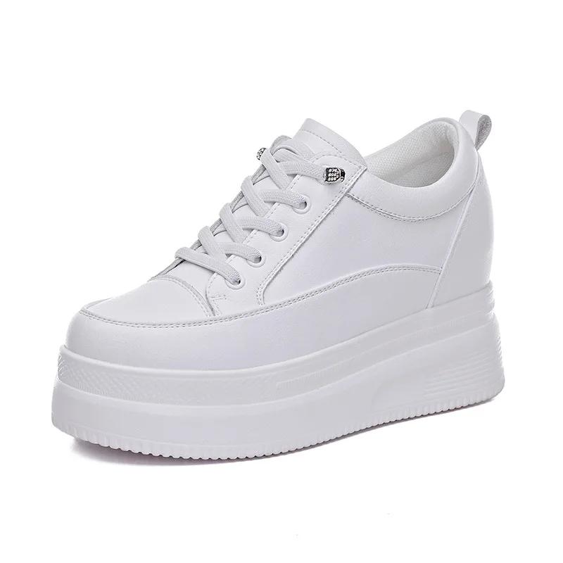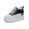 100% pravá kožená obuv, dámské módní tenisky, značkové dámské ploché boty na platformě, zvětšující výšku 8 cm, černé a bílé
