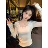 Hot girl off-the-shoulder slant-neck rivet hot-drilled long-sleeved sweater for women autumn new smocked waist elastic bottoming top