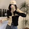 American Contrast Color Stand Collar Zipper Jacket Long Sleeve T-Shirt Women's 2024 Autumn New Slim Fit Niche Top
