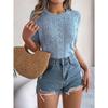 Spring Summer Women's Casual Solid Colour Hollow Out Short Sleeve Knitwear