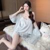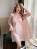 Floral Faux Satin Pajama Set for Women Slim Half Sleeve Robe with Halter Top and Lace Shorts Sexy 3 Pieces Pajamas Set Korea