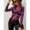 Podzimní a zimní dámské elegantní módní květinové potisky s malým stojacím límcem a dřevěnými ušními rukávy