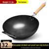 Traditional iron wok,Non-coating Woks Hand forged For Kitchen PanWooden Handle Wok Kitchen Gas Pot Cookware