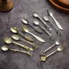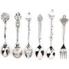 Mini královský styl příborová sada 6ks lžíce vidlička vintage vyřezávané dezertní lžičky kuchyňské stolní nádobí jídelní sada