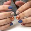 24 Pieces Short flower warm color is white, wear nail blue with brown European square nail art and royal finger.
