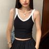 High-end Short Camisole Women's Outer Wear Summer New Contrasting Color High-waisted V-neck Sleeveless Bottoming Top
