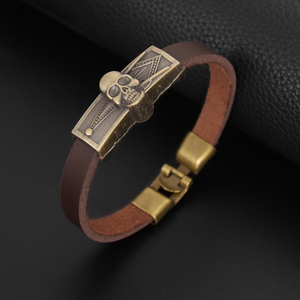 Pánský náramek v retro stylu lebky Velkorysý jednoduchý náramek s koženým náramkem Vánoční dárek