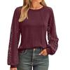 Women's Loose Casual Solid Color Round Neck Lace Patchwork Long Sleeved Top Long Sleeved Top